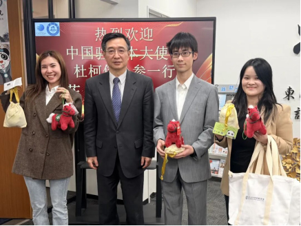 1月20日,中国驻日本国大使馆教育部公使衔参赞杜柯伟,刘丹领事,马力领事,鞠娜娜领事,孙丰旻领事一行5人到访千代田教育集团暨南大学日本学院,看望在校师生,并向大家送上新年问候与节日礼物。学院领导、教师代表及学生代表参加了此次交流活动。